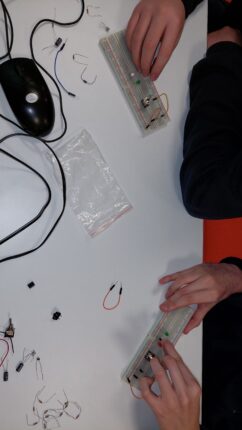 Los alumnos de 3º ESO han tenido una jornada en la cuál han descubierto los circuitos electrónicos, haciendo montajes para controlar LEDs, motores que se activan por luz o alarmas. Todo haciendo uso de la placa protoboard y los distintos componentes.