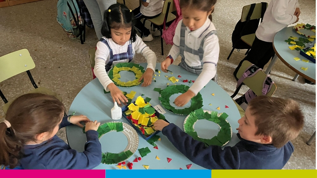 El viernes 28 de noviembre vinieron las familias para realizar una corona de Navidad, que utilizamos para explicar el inicio del Adviento. Nos quedó preciosa para adornar nuestras casas.