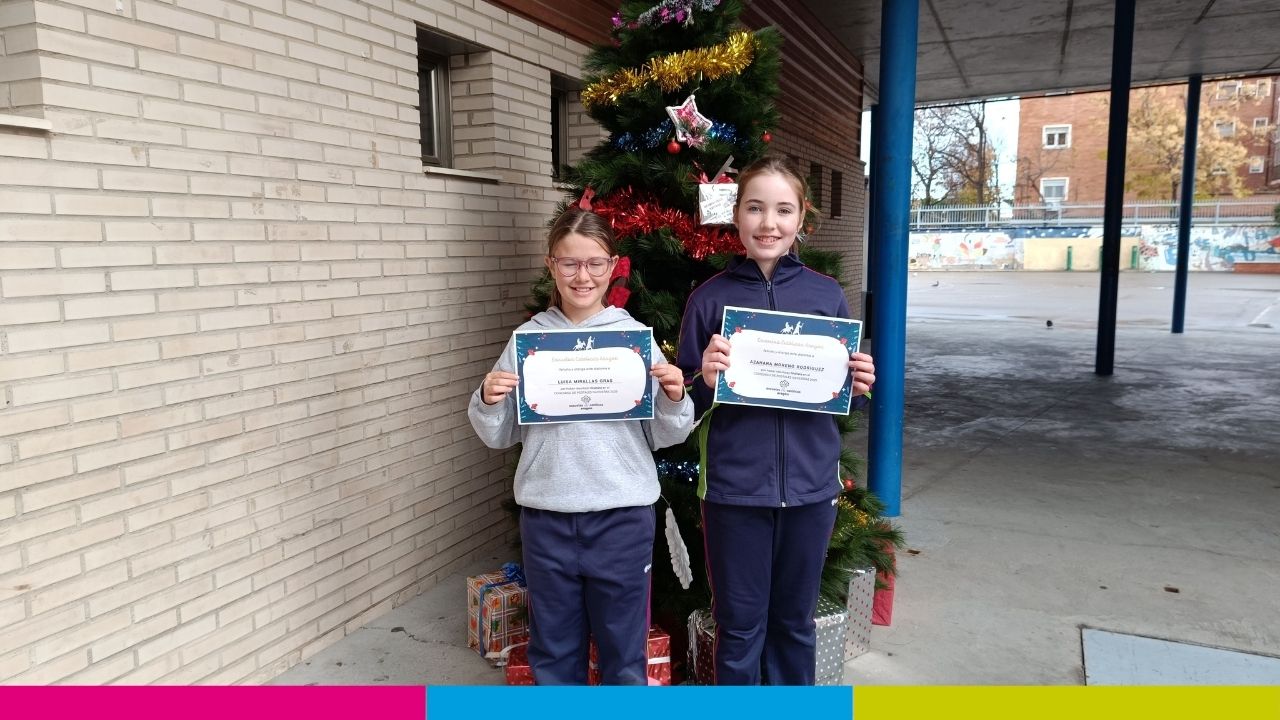 Las alumnas de 5º de Primaria: Luisa y Azahara, han resultado finalistas en el III concurso de postales navideñas organizado por Escuelas Católicas Aragón. ¡Felicidades a las dos!