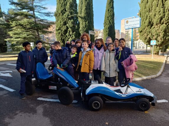 Los alumnos/as de 5º de Primaria participaron de la actividad organizada y dirigida por la Unidad de Educación Vial de la Policia Local de Zaragoza. Los niños/as disfrutaron mucho del recorrido por las calles del Parque Infantil montados en los karts, las bicis y los patinetes. Escucharon atentos a las explicaciones y tomaron conciencia de la importancia de respetar las señales como peatones.